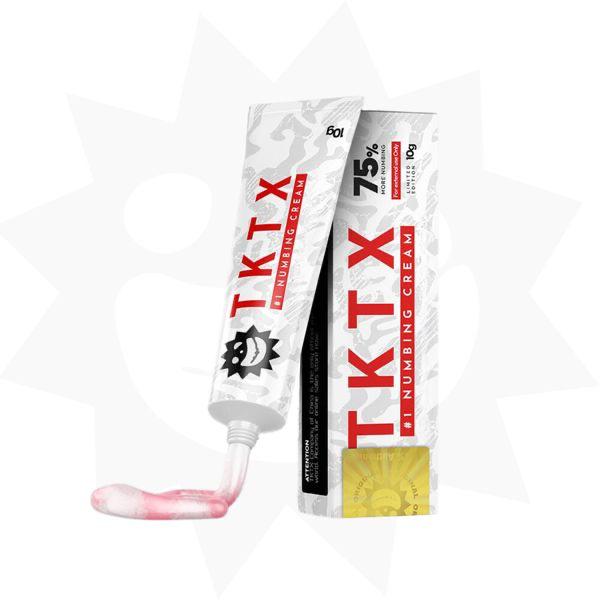 - TKTX blanca 75% | Fast Numb: Es una crema de acción rápida, lo que significa que el efecto anestésico comienza solo 25 minutos después de su aplicación, formulada para procedimientos cosméticos prolongados en los que el confort y el alivio del dolor son fundamentales.