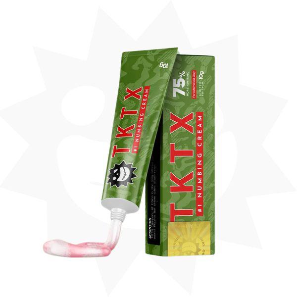 - TKTX Verde 75% | Deep Numb: La TKTX Verde 75% es una crema deep numb, lo que significa que penetra más profundamente en la piel que otras cremas, necesita 60 minutos para hacer efecto completamente, ideal para la eliminación de tatuajes grandes con láser, donde se requiere una anestesia más profunda para aliviar el dolor del tratamiento láser.