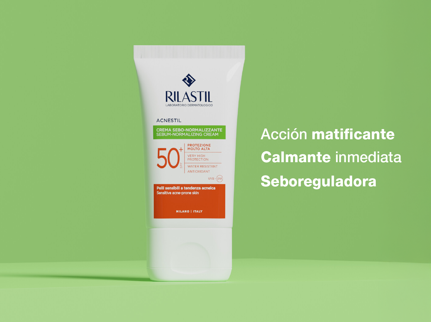 Acción matificante, calmante inmediata y seborreguladora.